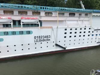33.5 m lang! Im Inneren ist sie zum Wohnen und mit einer Bar eingerichtet,